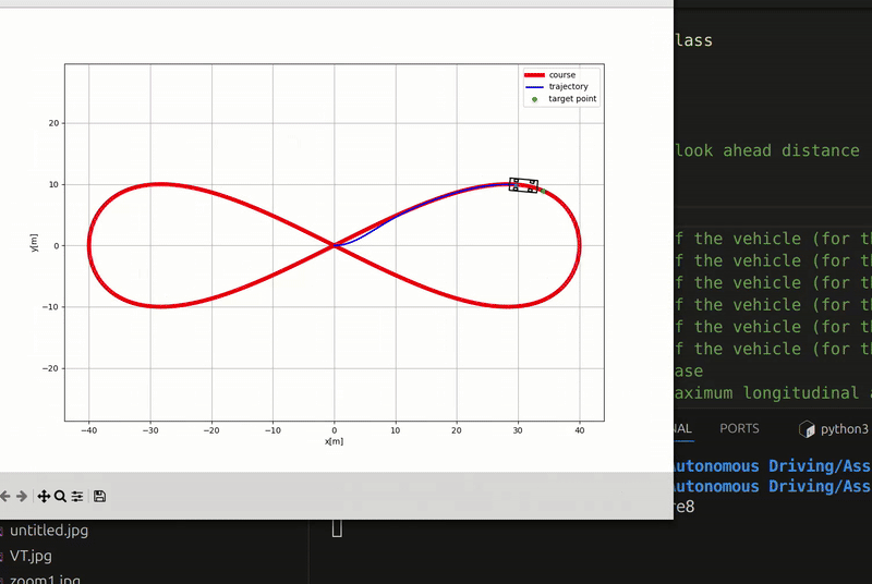 Implemented and tuned a pure pursuit controller on a kinematic bicycle model.